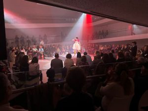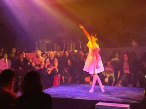 אבל לבסוף, הקהל נותר משתאה לנוכח מיצגי אופנה משכרי חושים של הדוגמנים הכריזמטיים של הגברת הראשונה של הדוגמנות הישראלית, סמדר גנזי, שהלבישה את דוגמני ה ProAging Models הלא צעירים בבגדים אותנטיים מן התקופה. אי אפשר היה להוריד את העיניים. אבל לפתע בקע קול בחשיכה מן האוב – היה זה קולו של האמן הפעיל הכמעט אחרון בן התקופה ההיא, ותבדל לחיים ג’וזי כץ. הזרקורים הופנו לאלי מגן, הקונטרבסיסט המיתולוגי, ששר סולו לצד הקונטרבס שלו, מן המרפסת שבחלל אולם המופעים. מגן החליף את אריק איינשטיין בהרכב ולצד שיריו וביצועיו חבש את ספסל נגני הקונטרבס בתזמורת הפילהרמונית עד שפרש ממנה לפני שנים אחדות.
