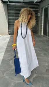לוק שלדעתי מתאים למפגש עם חברים בו נרגיש נוח ובסטייל הוא שמלה לבנה ארוכה או קצרה זאת יכולה להיות גם שמלה כחולה בליווי אקססוריז נכונים. כאן בחרתי שמלת מקסי לבנה, הוספתי תיק ועגילים בכחול נעליים בתכלת, צמיד, טבעת בצהוב. להדגשת המותן אפשר להוסיף לאוטו לוק חגורה צהובה.