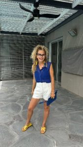 הכחול והלבן הם שני צבעים שנמצאים אצל כל אחת מאתנו בארון, לפחות כמה ג’ינסים וטי שירט לבנה. לא חייבים להיכנס להוצאות מיוחדות וללכת לרכוש חדש. זוהי גם הזדמנות נפלאה לאוורר את המלתחה. הצבע הצהוב יכול להיות קצת יותר מאתגר, לא לכולנו הוא נמצא במלתחה אבל אני בטוחה שתצליחו לשלוף משהו אחד או שניים לפחות. זה לא חייב להיות בגד. זה יכול להיות אביזר, תכשיט, נעליים, צעיף, תיק או כל דבר אחר שישתלב עם האאוטפיט הכחול לבן.