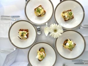לקחתי לגימה ראשונה ומתיקות עדינה שמשולבת להפליא עם טעם הקפה. רגע קסום של התרגשות עטף אותי. פשוט ישבתי שם, מביטה אל התקרה ומראה השמים הנשקף מלמעלה. חייכתי לעצמי חיוך רחב, הבוקר המפנק הזה התחיל בצורה מושלמת. מראה המפתה של הצלחות הגדולות הונחו על השולחן עם הביצה העלומה מונחת בצורה מושלמת ובאסתטיקה עילית לצד רכיבים איכותיים של הפרודוקטים. הצבעים והעיצוב נראו מדהימים וממש עוררו את החושי ועוד לפני שלקחתי את הביס הראשון. ואז כשנגעתי בביצה עם הכף והיא הייתה בדיוק בבישול המושלם כדי לשפוך את התכולה המופלאה על הצלחת – פשוט כמו גן עדן אמיתי! הטעמים הנימוחים והנפלאים התמזגו יחדיו.