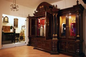 בחצר מוצג כלי מסורתי להכנת מי ורדים, עריסה מתנדנדת וכן ציורים של סצנות מהווי המטבח של האמן אלי סודאי, יליד בגדד את הוי החיים.