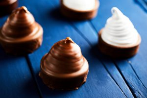 יש לטבול את הקרמבואים שקפאו בקערית השוקולד המומס עד לציפוי מלא.