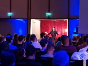 אחרי חודש וחצי של סגר בבית עם הילדים וביטול כל הופעות הסטנד אפ שלה, רותם אבוהב יצאה לחפש קהל למופע שלה והגיעה למקום היחיד בארץ בו מותר לאנשים להתקהל – מלון דן פנורמה בתל אביב, בו שוהים בבידוד כ-500 חולי קורונה.