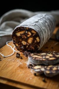 קינוח פודינג שוקולד עשיר שהתחפש לנקניק צילום Studio Teka