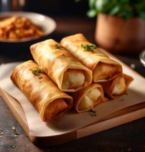 - מקפלים את דף הפילו על המילוי משני הצדדים ומלמטה. מגלגלים בזהירות על לסוף הדף.
