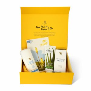 מארז FOREVER BASICS : כולל 2 שפתוני אלו ליפס, ג’ל לצחצוח השיניים, סבון אבוקדו ודיאודורנט, במחיר של 145 ₪.