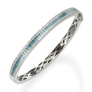 יהלומים לבנים וכאלו בצבע תכלת בהיר או אחרים המשלבים אבני ספיר בגוון כהה או טופז ואקווה מרין בהירות.