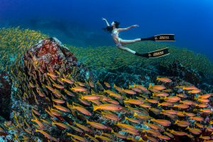 כך שהשחייה עם הסנפיר לא נועדה להעצר בגדר תחביב בלבד עבור מור. וכשנתקלה בתמוניתיו של הצלם אורן כהן זיהתה הזדמנות לזנק קדימה בעולם הזה, היא פנתה אליו והוא נעתר לבקשתה. יחד ירדו השניים לצילומים באילת, בזמן שהוא יושב בקרקעית הים היא צללה צלילה חופשית. וכך הצילומים המרהיבים הלוו הובילו את מור להפוך לפרזונטרית של חברת הסנפירים, אליה כל כך התחברה.