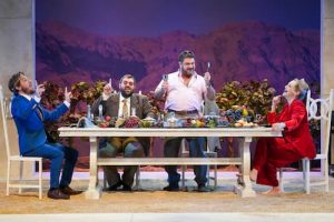 ההצגה, המבויימת בידי נתן דטנר בשמרנות מעניינת, נאמנה לרוח הטקסט בן עשרות השנים של שבתאי, והבימוי והמשחק הנפלא של צוות השחקנים, בהחלט מצליח להביא משהו מן הרוח המפא”יניקית המבוהלת שנשבה בסוף שנות השבעים לאחר המהפך הפוליטי שהדיח את מפא”י מן השלטון מחד, אך הביא למלכות שנתפסה כמטורפת ומשיחית בעיני לא מעט מאנשי המרכז והשמאל הישנים. ואכן, המחזה העוסק אמנם בנושא מקראי מיתי, מבויים ב”הבימה” בשנת 2024, מתוך כבוד לרוח השבתאית ונראית לעתים כקפסולת זמן מרתקת. שניים משיריו המולחנים של שבתאי המלווים את המחזה, “שיר ההד” ו”קנקן תירוש” משיבים אותנו אל העידן המסוכסך לא פחות ההוא של החברה הישראלית.