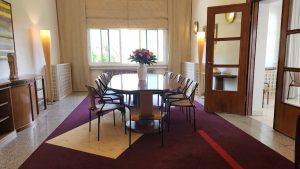 אולם הריהוט המודרני מעיד על המנעד העשיר של גיוונו: רהיטים קלאסיים מתחילת המאה ה20-שלהם קווי מתאר נקיים אך אקספרסיביים, לצד מנורות רצפה של פוסקריני ושידות סוריות עשויות עץ ואם הפנינה.סביב הריהוט האקלקטי תלויות יצירות אמנות עכשוויות שהושאלו מאוסף פינצ’וק.