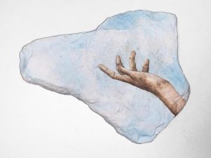 האמנית לינוי טולדנו מציגה מספר יצירות ובהן “free falling” – צבעי אקריליק על סלע המציג דמות אישה בנפילה חופשית אינסופית. הנפילה משקפת את התרחשויות חיינו שמביאים לתחושות ושינויים שיכולים להיות כואבים, עם זאת האישה נראית שלווה כאילו נופלת אך עפה בו זמנית”, היא מגלה. home, ציור שמן על קנבס, מציג הבנה שלפיה יש עולם נשגב שמימי וקסום שממנו באנו, “ואני כאן במציאות הפיזית, וחוויתי געגוע גדול לבית – לא כאן בארץ אלא שם למעלה, מהיכן שבאנו”, היא מסבירה.