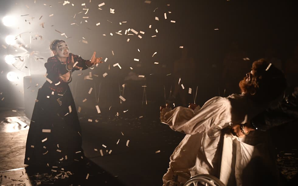 האם הוא פוחד מהמוות או מאובדן שליטה? האם תמיד נהיה רלוונטיים? ההצגה נפתחת עם 4 הדמויות הססגוניות במאופרות בכבדות ולבושות בבגדים מפוארים: המלך החזק הצעיר והמפונק שאינו מפסיק לצעוק ולנסות להאפיל על שאר הדמויות.