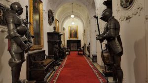 בטירה ניתן לראות חדרים רגילים למגורים, חדר מסדר, חדר ישיבות וספרייה. חלק מהחדרים מקושטים בצורה סגנון רנסאנס ומכילים אוסף של אובייקטים המקושטים באמנות מקומית, חדרים לאורחים, חדר ישיבות גדול, חצר עם באר מים, חדר נשק, חדר עינויים בתוספת תשלום.המרפסת שבטירה היא מקום מושלם ליהנות מהנוף ולשקוע באווירה של פסטורליות לצד משב אויר קריר אל מול השטחים הירוקים מסביב לטירה. חוויה בלתי נשכחת.