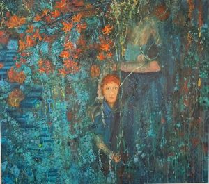 נטליה, אימו של מארק רפייביץ’, אמן צעיר על הרצף האוטיסטי, מספרת כי יצירתו “הילדה והכובע הקסום” צוירה בעקבות מקרה יוצא דופן שהתרחש כשהחלה המלחמה. “מארק ואני יצאנו לטייל ליד הים. הטיילת הייתה נטושה בצורה יוצאת דופן – מעטים העזו לטייל במהלך ההפצצות התכופות. כשהלכנו לאורך החוף, נתקלנו בגבר צעיר עם ילדה קטנה, כבת ארבע, לבושה בשמלה מנוקדת בהירה. במהלך שיחתנו נודע לנו שהם פליטים מדרום הארץ. שיחתנו נקטעה בפתאומיות על ידי צליל מחריש אוזניים של צפירת תקיפה אווירית, ויחד רצנו למקלט סמוך. בביטחון של המחבוא התכופפנו במעגל – החזקתי את הילדים קרוב, בעוד אביהם מכסה אותנו בזרועותיו הגדולות והחזקות, כמו חסידה המגוננת על הקן שלה מפני סערה. האיש ניסה להישאר רגוע, אך ידיו הרועדות הסגירו את פחדו. הילדה הקטנה בכתה ללא שליטה, ומארק נתקף אימה – כל גופו התקשח תחת משקל המצב. הורדתי את הכובע רחב השוליים האהוב עליי, והנחתי אותו בעדינות על ראשה של הילדה הבוכייה. אמרתי לה שהכובע היפה הזה קסום, ושום דבר רע לא קורה לאלו שחובשים אותו. הילדה הפסיקה להתייפח, דמעותיה הצטמצמו לשיהוקים רכים, כשהקשיבה בקשב רב. ‘הכובע יוצא הדופן הזה מגן מפני כל הסכנות והצרות’, אמרתי בנימה הכי משכנעת שיכולתי לגייס. כדי להוסיף לסיפור, סובבתי כמה סיפורים על איך הקסם של הכובע הנפלא הזה הציל אותי בעבר. אמרתי לה שהכובע הוא מתנה מאבי. ‘ועכשיו, אני נותנת לך את זה, כך שלעולם לא תצטרכי לפחד שוב!’. הילדה נרגעה, וחיוך קטן אפילו החל להופיע על פניה. אביה היה אסיר תודה. מאוחר יותר נזכר מארק ברגע החי הזה בחיינו והחזיר אותו לחיים באחד מציוריו החדשים והתוססים”.