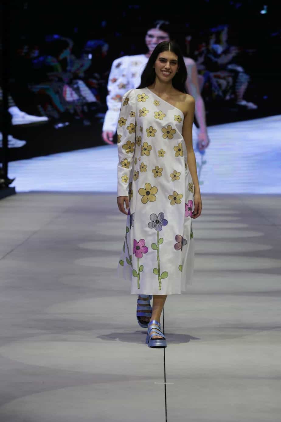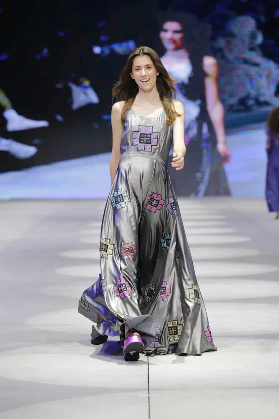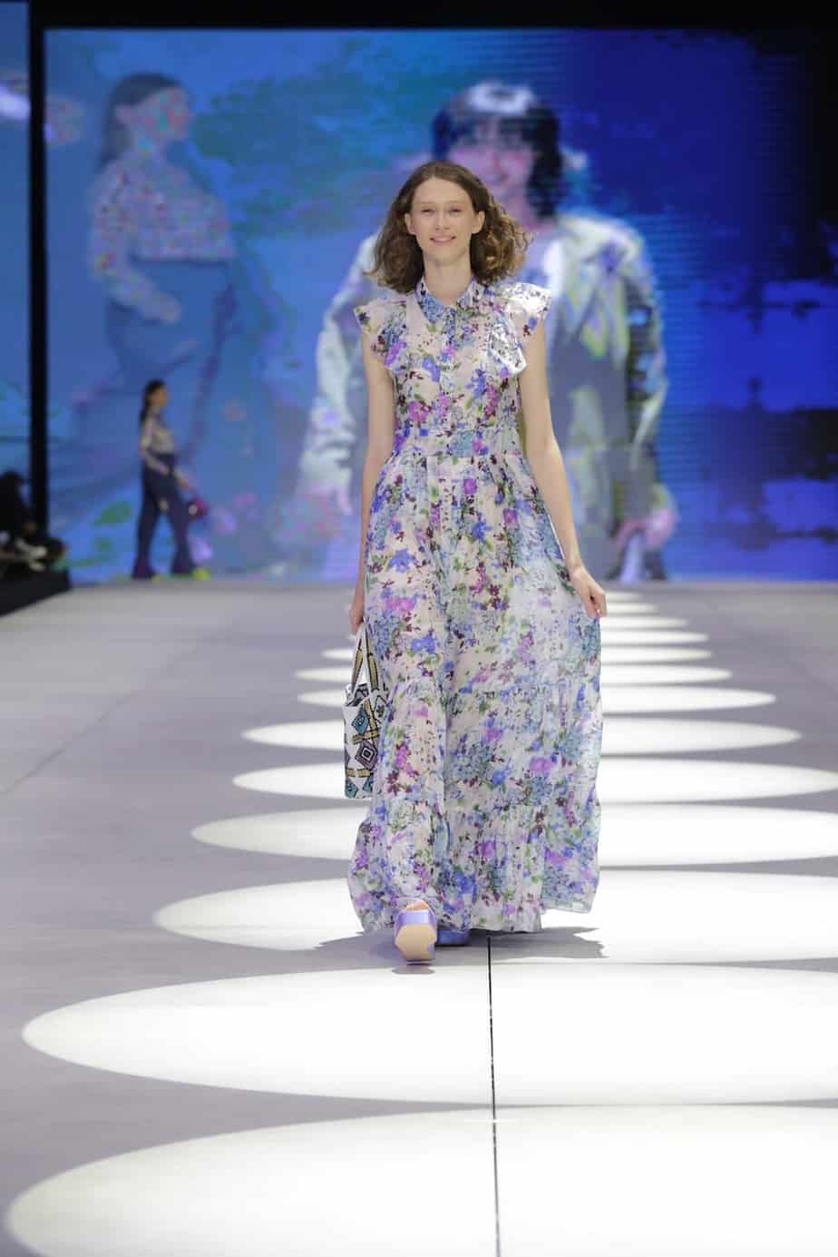לאחר סיום הטקס החל תצוגת האופנה של המעצבת, המוזיקה השמימית החלה להתנגן והדוגמניות החלו לצעוד על המסלול. ההשראה של עיצוב הבגדים בהשפעת הקורונה והמלחמה באוקראינה והן בדרכן האופטימית החלו להציג 51 דגמים של אופטימיות מנצנצת.