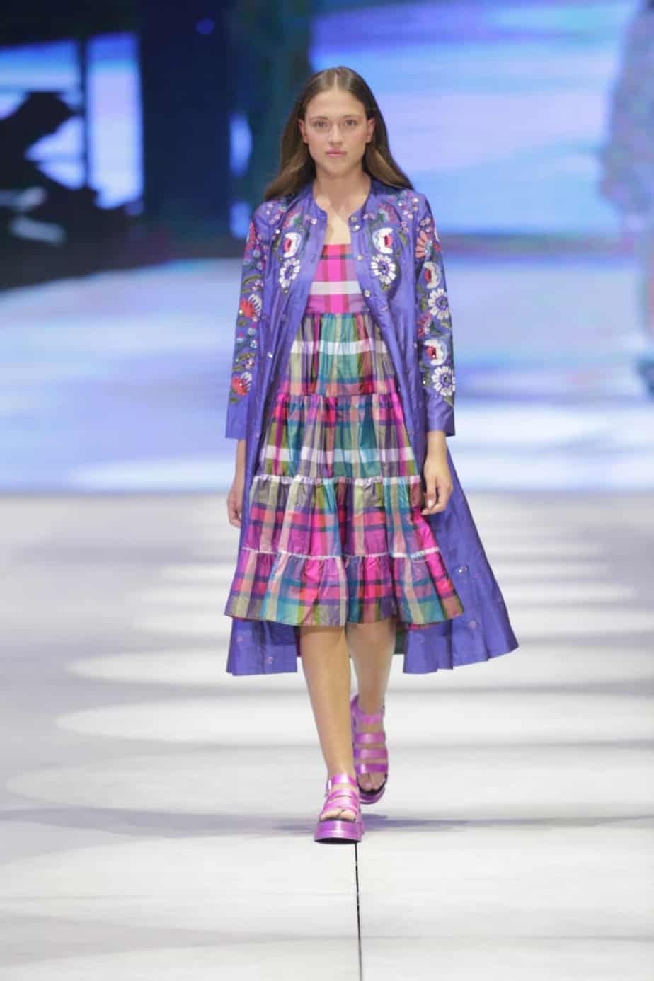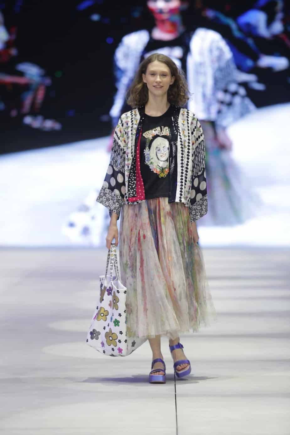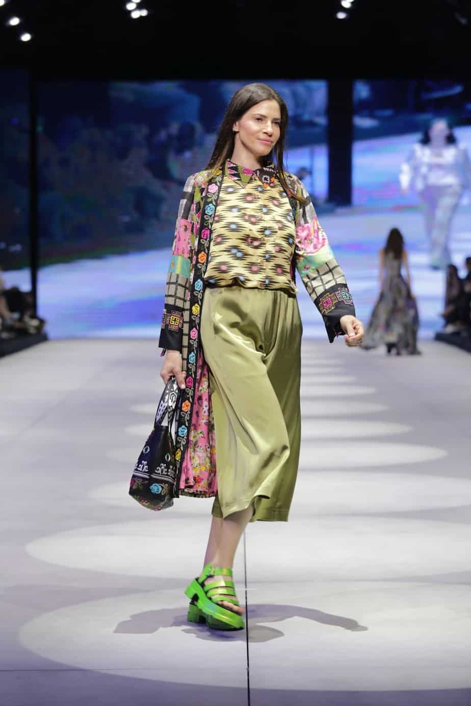 לאחר סיום הטקס החל תצוגת האופנה של המעצבת, המוזיקה השמימית החלה להתנגן והדוגמניות החלו לצעוד על המסלול. ההשראה של עיצוב הבגדים בהשפעת הקורונה והמלחמה באוקראינה והן בדרכן האופטימית החלו להציג 51 דגמים של אופטימיות מנצנצת.