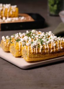 הכנת הקלחים: מושכים את הקלחים בשמן קנולה וצולים במצב גריל ב- 200 מעלות במשך 3-5 דקות. מוציאים מהתנור ומקשטים בגבינת פטה טבעונית וכוסברה. מלווים בפרוסות ליים ובמיונז צ’יפוטלה.