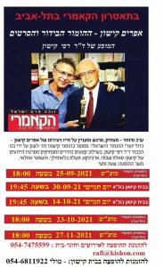 את הופעת ההומור המצליחה, המקורית והייחודית שלי – על חייו וסרטיו של אבי – אתם יכולים לראות בתאטרון הקאמרי בת”א או בבית קישון באפקה, או להזמין לכל אירוע כולל חוגי בית.