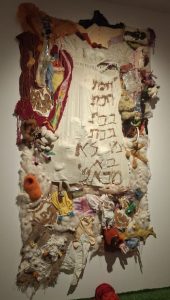 תערוכה הרביעית: אדווה דרורי- מלכת העצב כל כך אהבתי אותה,מאוד דיברה אליי.( אני עוסקת במיצגים כאלה).זהו בעצם מיצג טוטלי המזמין את המבקר לחוויה חודית רב שכבתית: זיכרון,טראומה וריפוי. ביקשו מאתנו לילוץ נעליים עמ לחוש את הדשא ולשבת בחצאי הכדורים הגדולים המכוסים בבדים מרהיבים וססגוניים.אנחנו הצופים הפכנו לחלק מן היצירה.כל המיצגים ניתנים לנגיעה ולמישוש. בתערוכה הפעלנו כמה חושים; ראיה,שמיעה, מישוש,ריח ונגיעה.הזיכרון הטראומה והריפוי משתלבים יחד. הריפוי וההחלמה הם שלבים אחרי העצב והטראומה.גם כאן משמשת תורתו של פסיכולוג השרטה לאמנות הפעם זה ואן דר קולק שטען:שבאמצעות סריקות הדמיה ניתן לזהות את השלכות הטראומה על מערכת העצבים במוח.ומכאן לנבא את השלכות ההדמיה על תהליך השיקום, הן העיצבי והן הרגשי. לתמיכה הפיזית והרגשית של הסביבה יש השפעה גדולה בתהליך השיקום וההחלמה.הנוכחות של הקולקטיב היא חלק מהריפוי.כי הקולקטיב משמש כתומך ( אמא ותינוק).אהבתי להיות חלק מהתערוכה הזו.