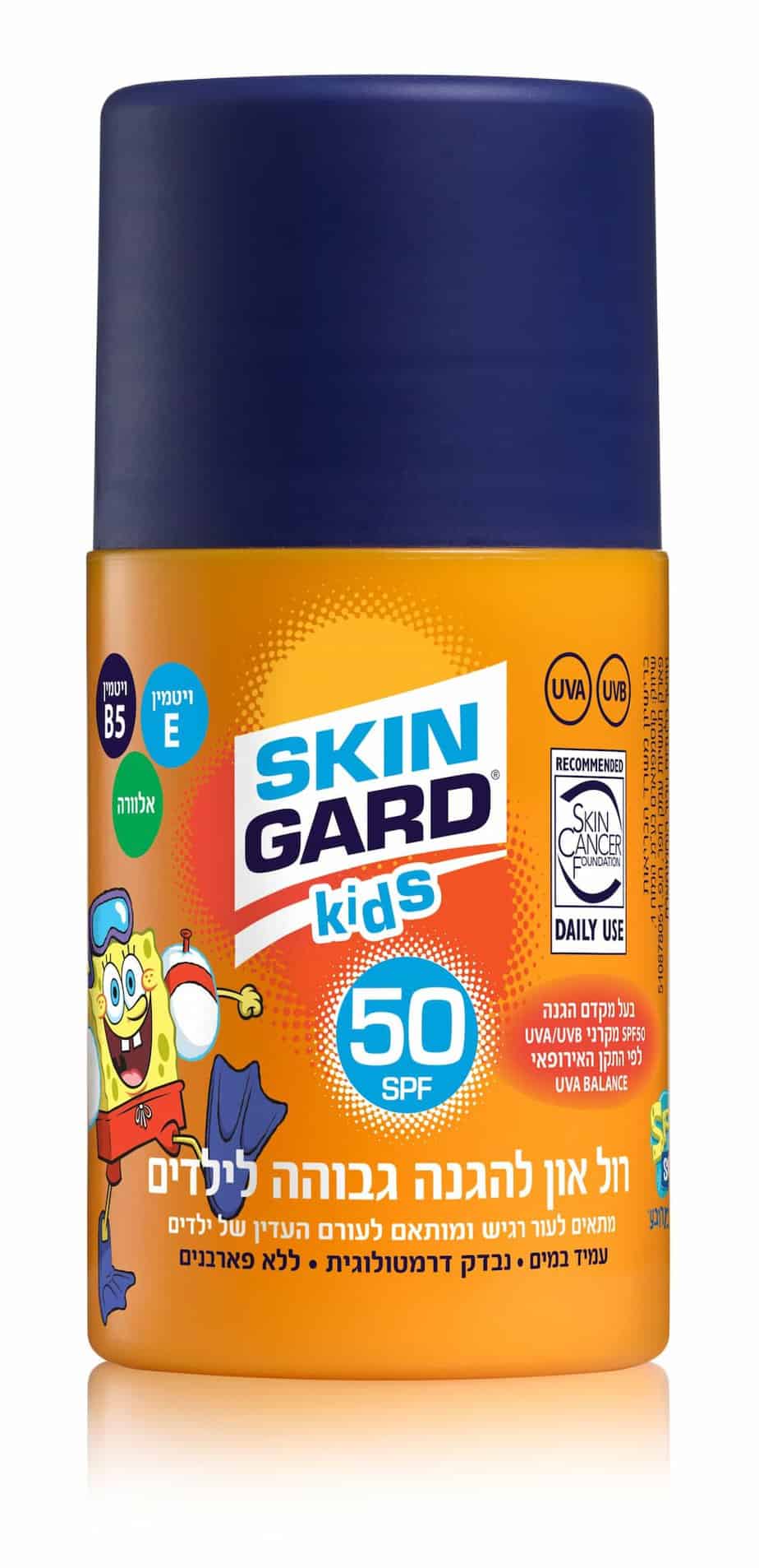 מותג סקין גארד משיק תחליב הגנה באריזת רול-און המאפשר מריחה מהירה ונעימה לצד הגנה גבוהה ורחבה. אריזת הרול-און מאפשרת לילדים בכל גיל, להימרח בקלות בבית הספר, בטיולים, בגינת השעשועים, בבריכה או על שפת הים. רול און מיועד לילדים, קומפקטי ונוח לשימוש ומריחה על כל הגוף. לא מלכלך, לא נשפך ולא נוזל על הגוף. המוצר החדש מכיל פרו-ויטמין B5 להעשרת העור בלחות, ויטמין E (אנטי אוקסידנט) להגנה על העור ועשיר באלוורה ואלנטואין להרגעת העור. בעל מסנני הגנה גבוהים (SPF50) העומדים בתקן האירופאי המחמיר UVA BALANCE ומומלץ על ידי האגודה למלחמה בסרטן כמוצר לשימוש יומיומי.