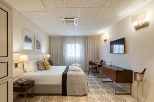החדר יוקרתי אירופאי במהותו. המיטה הרחבה עליה מונחים שני חלוקי קטיפה מזמינים, הכריות מעט קשות אבל מתעצבות בדיוק לפי הראש. שולחן כתיבה אלגנטי, שידה מעוצבת, מראה גדולה וארון בסגנון אירופאי קלאסי. פינת הקפה מציעה מכונת קפסולות איכותית, ולכל אורח מוגש בקבוק מים מינרליים כשירות בסיסי ותשומת לב לפרטים לאורח. חדר השירותים עם מקלחון מושלם לצד מגבות קטיפה במשקל 800 גרם, ארוכות כמו גלות שמחבקות את הגוף. הנוף מהחלון משקיף אל הבריכה של המלון והמראה כמו מתחם של חו”ל. חייבת לציין את השקט ואת הרגע הזה שהיה רק שלי. עומר פורת, מנכ”ל המלון, מסביר את החלטתו שכל החדרים ללא שטיח: “היה חשוב לי, ומניסיון המלונאי שלי, שאני לא אוהב את ריח הטחב של השטיח, הלכלוך והכתמים. כל החדרים מצויידים רק במקלחות ויש לנו שני חדרי נגישות.”