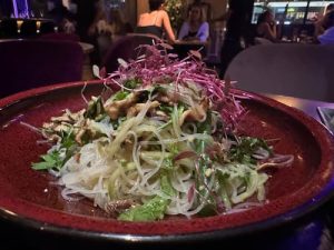 הגיעה לשולחן מנה שלא יכולתי להסיר את עיני ממנה: אטריות ופטריות עם מיקס של עלים ופטריות שיטאקי (65 ₪). אטריות שועועית במנה מושלמת שחובה לטעום אותה לכל סועד שמגיע למסעדה. התיבול נהדר, והשילוב של הטקסטורות השונות יוצר חוויה קולינרית מלאה. כשאנחנו במסעדה אסייתית, מתבקש להזמין סוגים שונים של סושי. ילדיי מטורפים על סושי, לכן לא הססנו והזמנו אינדיאן רול (67 ש”ח ), יאקי סלמון(67 ש”ח) ואוסאקה סלמון (71 ש”ח). אני רוצה לציין שהמנות גדולות מאוד ומגיעות בכלי הגשה נפלאים. הטעמים מעולים, הדגים טריים והילדים לא הפסיקו לאכול את המנות.
