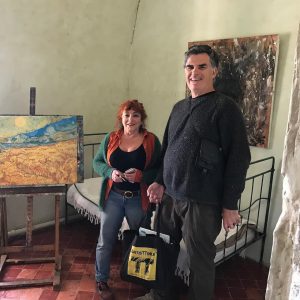 לפני שבע שנים התחלנו להפיק את הריטריט ‘בעקבות ואן גוך וסזאן בפרובאנס’ שבו האמנים מתאכסנים במלון בעיר הדרומית ארל. מדי יום אנו לוקחים את האמנים למקומות שבהם וינסנט ישב בעצמו לצייר, וכולנו מציירים מאותו נוף או מאותה נקודת מבט, אך כל אחד מצייר בסגנון שלו ובטכניקה האישית שלו. אנחנו נוסעים עם ואן, שבו יש כני ציור, כיסאות מתקפלים, כלים למים, לוחות עץ לציור, שולחן מתקפל לארוחת צהרים בסגנון צרפתי בכל מקום שבו נצייר בשעות ארוחת צהרים. מכיוון שכל אחד אוהב לעבוד בטכניקה ובגודל שונה, אנחנו מבקשים להביא צבעים, מכחולים ובדים. את כל השאר אנחנו מספקים וכמובן מדריכים ועוזרים למי שמבקש”.