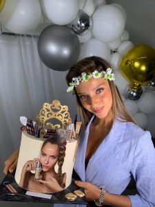 לקינוח: אלחימסטר קיבלה מבכירי בעלי רשת האיפור והטיפוח SACARA, עוגת יומולדת מעוצבת, מקורית ומפוארת, שכללה בין היתר תמונות של נטע מקמפיינים אליהם הצטלמה לחברה, בשילוב מוצרי איפור ממרציפן.