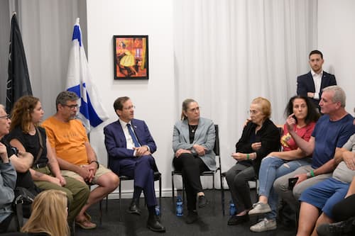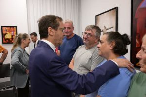 על רקע הטרור האכזרי שפקד את תושבי עוטף עזה והדרום, נפגשו נשיא המדינה יצחק הרצוג ורעייתו מיכל, היום, יום חמישי, כ״ז בתשרי, 12 באוקטובר, עם תושבי הישובים, הקיבוצים, והערים מעוטף עזה ומדרום הארץ אשר פונו למלון במרכז.