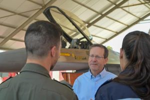 המבצעית של הבסיס, בו פועלות טייסות קרב וטייסת מסוקים, אשר כולן לוקחות חלק פעיל במשימות תקיפה והגנה על שמי המדינה.במהלך ביקורו, התקשר מפקד חיל האוויר, אלוף תומר בר לנשיא המדינה ויחד ביקשו לחזק מקרוב את הטייסים, אנשי התחזוקה, כוחות הקרקע וכלל המשרתים.