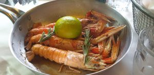 מנה ראשונה סלט עגבניות רענן עם חתיכות לחם חום, סלסלת לחמים קטנים, כמובן אוזו לפתיחת הגרון. לא לדאוג אני לא נוהגת. מנה שניה, דג מקרל מעושן על המקום במחבת ומנה עיקרית פירות ים בקערות גדולות מסביב פסטה מקומית.