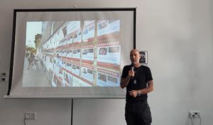 הרצאתו של קורן נפתחה אתמול בצהריים באולם מלא בקהל שהגיע לשמוע את חוויותיו של קורן, בעזראלי שרונה בת”א. קורן ממשיך בהרצאתו ומספר שחזר לביתו לאחר תיעוד הטיל שנפל בת”א. קורן נחשף בטלוויזיה לסרטון שצולם על ידי התושבים המתעד את מחבלי נוחבה נוסעים ברכב טנדר לבן בשדרות ויורים לכל עבר באקראיות. כצלם מנוסה, קורן השתומם לנוכח אירוע הטרור המזעזע הזה,המטלטל ומבין מהרה שמדובר באירוע לא רגיל בהיקפו וחומרתו. הוא התארגן עם צוות קולגות בצילום וחש למקום האירועים המזעזעים בדרום. בדרכם, נתקלו בירי מטורף של פצ’מרים וטילים ממחבלים ולנגד עיניהם נגלה תרחיש קשה מנשוא. שורה של רכבים על הכביש, כשבני הנוער נורו ע”י נוחבה חמאס שברחו מהמסיבת נובה והמחבלים ירו לעברם ללא רחם.