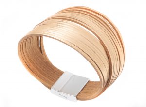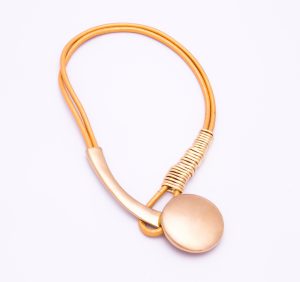 התכשיטים עשויים בין היתר מסטיינלס סטיל, ציפויי זהב וכסף, עור ודמויי עור.