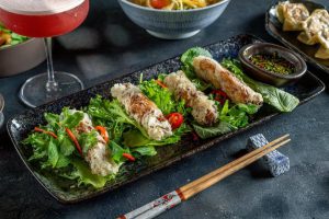 המשכנו עם מנות ראשונות לדוגמת סלט ריבר, סלט הדגל, שמרכב מסלנובה, בוטנים קלויים וקצוצים, קריספי בטטה וויניגרט הביתה, נאמס ויאנמי שמגיע בארבע יחידות והוא דף אורז במילוי עוף, גזר, שיטאקה על מצע אייסברג נענע, כוסברה ורוטב פונזו, גיוזה צרובה במילוי פרגית קצוצה ושתי יחידות באן נפלאות ונימוחות ממולאות אונטריב ראנדנג.