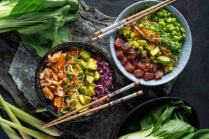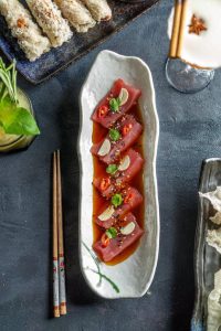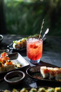 הסושי שלנו היה הרול של ג’יג’י שהוא סלמון טמפורה, אבוקדו, כרוב סגול, טונה קצוצה, איולי יוזו וצ’ילי חריף וגם ניו סטייל סלמון שמוקף בשבבי אורז כפנינים שמתפצפצות בפה ומתערבבות בטעמי הסלמון הנע, הצ’ימיצ’ורי והאיולי, ורול מטוגן BP עם סלמון מטוגן, מלפפון ואבוקדו שמגיע חם.