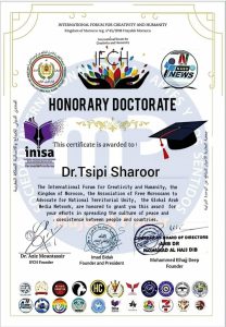 Tzipi Shahroor is a world-renowned poet, writer, editor and creator, she is like a living heart, a golden light rose of the sun rush, a sublime poetry, such a beloved and well-known creator in Israel, this year she celebrated 50 years of exemplary multifaceted work, fruitful and praiseworthy, poetry that breaks through and shines life in a rainbow of nature, insights, emotion and alongside love of the beauty of the soul of the human spirit. In June 2023, her unique and fascinating book “The Poetess” was published by Beit Eked Publishing House, edited by Dr. Shilhav Kest. Tzipi is one of the pillars of Israeli poetry in all its splendor and beauty, this year the dear Tzipi received an award on International Inspiration Day for her contribution to the world of culture and literature through 50 years of creativity and hundreds of first-class literary projects that she produced, including the capsule, a unique anthology on the occasion of Inspiration Day, which is published every year in New March on Inspiration Day International.