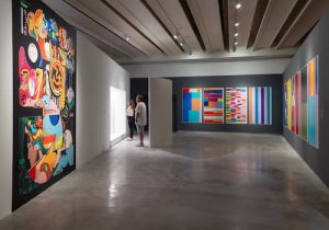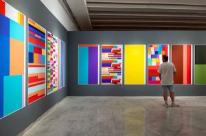 בין “צבע לצבעוניות” חלל הגלריה העליונה: כחול דגל. כחול לבן חניה. אדום לבן חניה. צבע אדום. אדום הפועל. צהוב כחול מכבי. צהוב בית״ר. צהוב חטופים. ירוק צה״לי. התו הירוק. ירושלים של זהב. צבע הוא לא רק גל אור בעל תדר מסוים, ולצבעים שונים משמעויות שונות בתרבויות שונות.