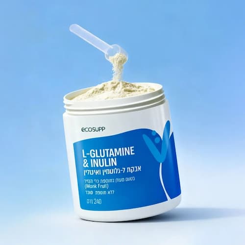 אינולין – אינולין הוא סיב תזונתי טבעי המשמש מזון לחיידקים הטובים במעי. הוא מעודד את צמיחתם של חיידקים פרוביוטיים, מסייע באיזון פלורת המעי, תורם לעיכול נוח ובריא ואף מחזק את מערכת החיסון מבפנים. בשילוב עם ל-גלוטמין נוצר אפקט סינרגטי: תמיכה כפולה במעי, חיזוק תפקודו ושיפור תחושת הקלילות.