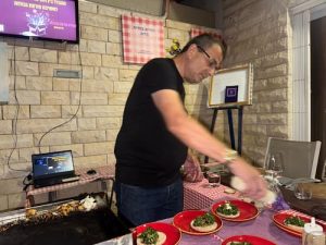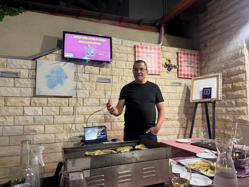 משם עברנו למנה האחרונה שאייזק הכין: המבורגר. “המנה הזו מחזירה אותי לשורשים,” הוא מסביר. “המבורגר הוא המזון שפרץ הכי הרבה גבולות בעולם. הוא הגיע לכל מקום.” ולסיום, הוא משתף בחוכמה אחרונה: “זה לא משנה איזה יין אתה שותה אלא עם מי אתה שותה אותו.” המעגל נסגר עם שירו של פרנק סינטרה ברקע, והרגשה שיצאנו עם כלים חדשים לחשיבה.