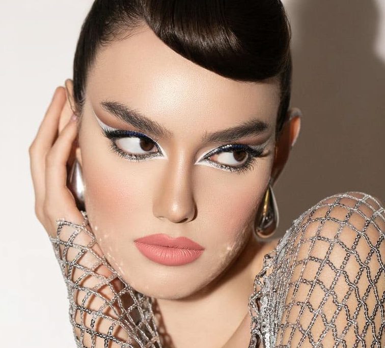 - מורחים קן אייליינר סביב קו הריסים העליון, שהולך ומתעבה בכיוון הרכות. כדי ליצור מראה דרמטי, מוסיפים מעלין אליינר בצבע לבן עם סיומת שפיצית חדה. מעליהם מניחים צללית בצבע חום אדמה