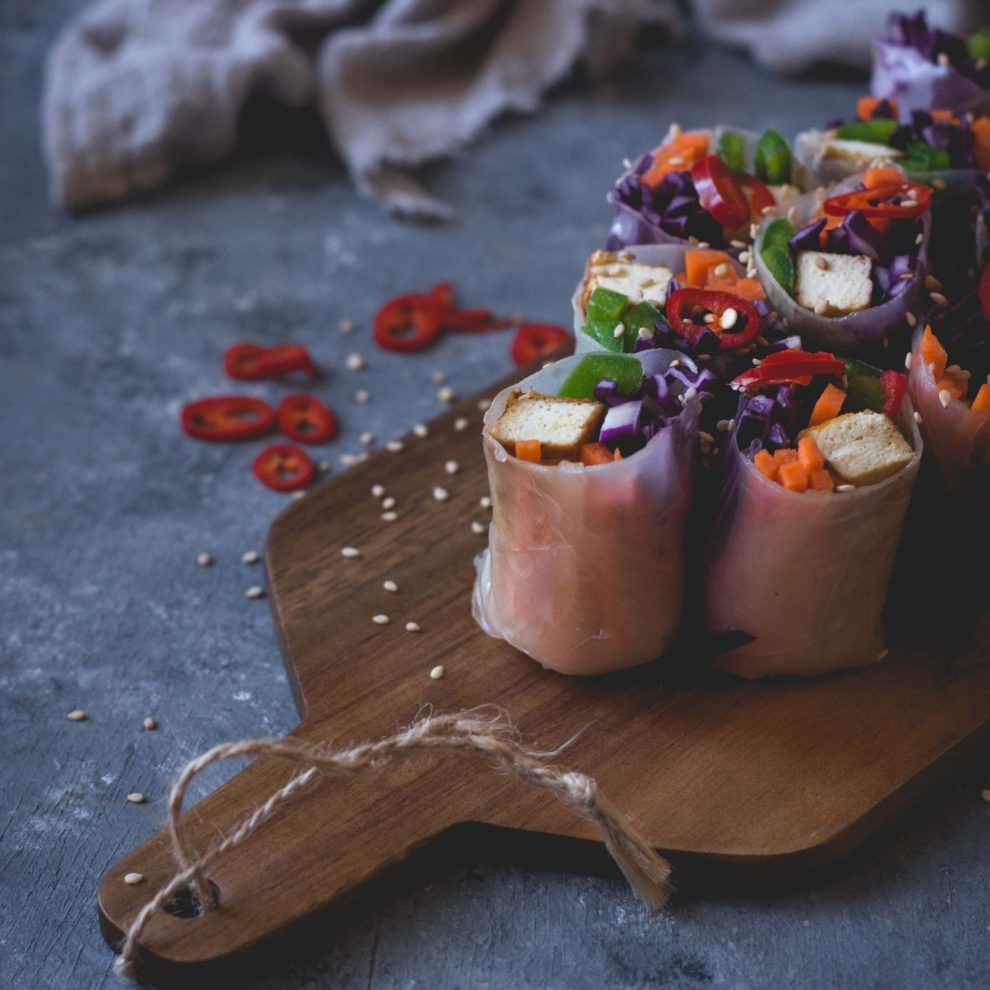 ספרינג רולז ירקות וטופו צלוי במטבל חמאת בוטנים וצילי צילום סטודיו טקה
