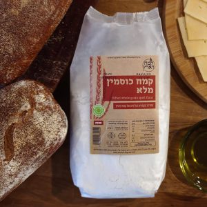 הקמח מכיל 100% קמח כוסמין מלא, שנטחן מהגרעין בשלמותו, ללא צורך בניפוי.