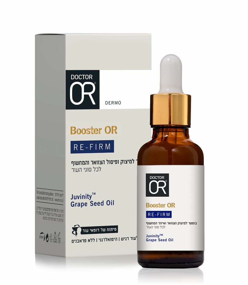 בוסטר FIRM- RE- בוסטר אנטי אייג’ינג עם רכיב פטנט ייחודי לשימוש באזור הפנים, הצוואר והדקולטה (מחשוף) למיצוק, פיסול וטיפוח העור ובוסטר NIGHT – בוסטר לילה עוצמתי לשיקום העור.