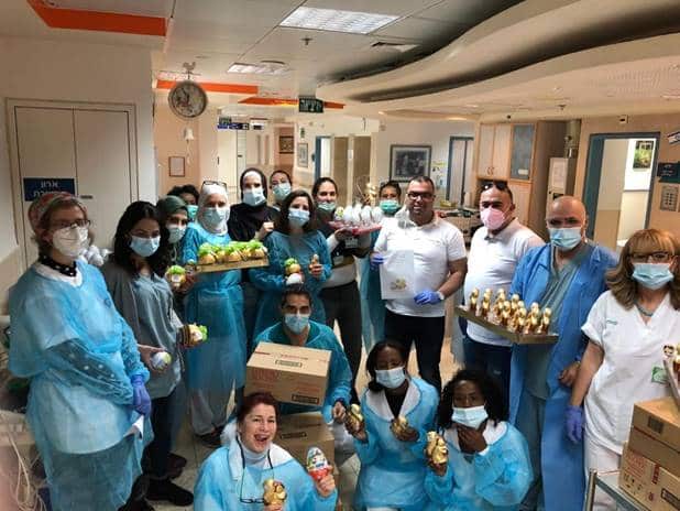 הצוותים הרפואיים נהנו מביצי הפתעה קינדר מקסי, שוקולד סנאי של פררו רושה וכדור שוקולד גרנד