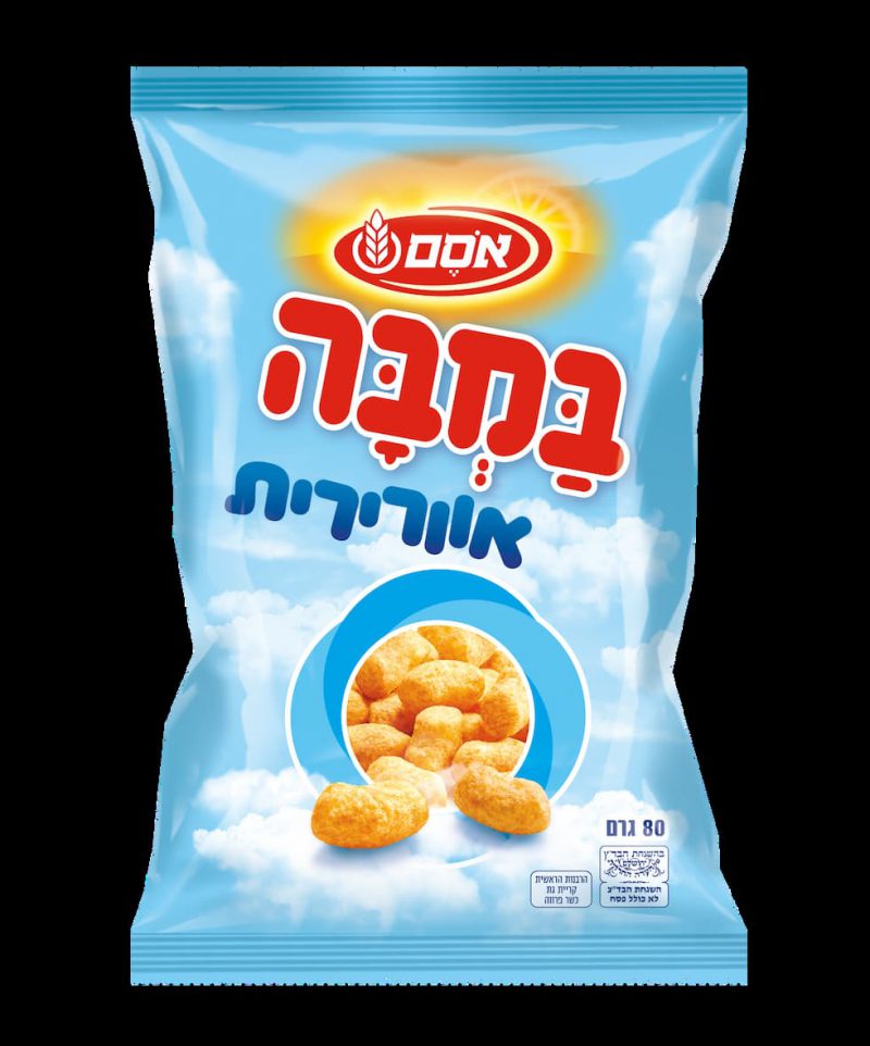 במבה אוורירית על המדפים החל מחודש אוגוסט. אריזת במבה אוורירית מעוצבת בנראות בולטת על המדף, עם איורים של עננים על רקע השמיים בצבעי תכלת המעבירים את תחושת האווריריות. תכולה: 60 גרם ו-80 גרם.