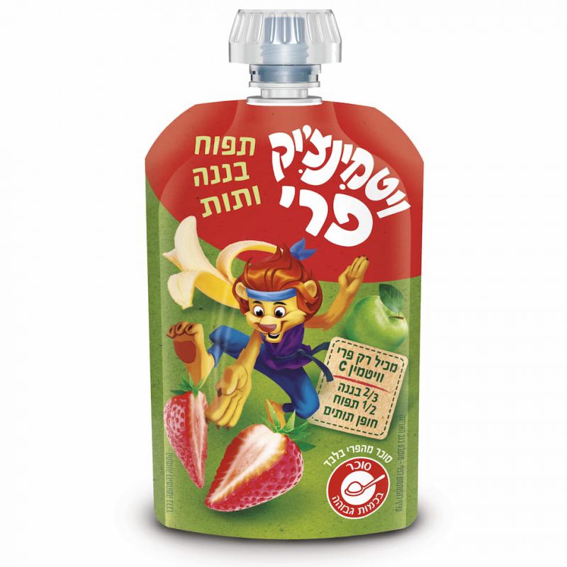 ויטמינצ’יק פרי מגיעים באריזת סמוצ’י 110 גרם, ומכילים מגוון פירות שילדים אוהבים במיוחד, ללא תוספת סוכר (מכיל סוכר מהפרי בלבד), ללא חומרים משמרים וללא חומרי טעם וריח, ב-5 טעמים: בננה תפוח, תפוח בננה ותות, סלט פירות, תפוח אגס בננה ואגס תפוח ופירות יער.ועכשיו – פעילות נושאת פרסים!- קנו 4 יחידות של ויטמינצ’יק פרי, היכנסו לפייסבוק של ויטמינצ’יק לענות על שאלת השבוע, ותוכלו לזכות ב- 500 שקלים לקנייה ברשת קרביץ.