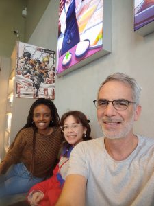 “אני נשוי בנישואיי השניים ויש לי שלושה ילדים משלי ושלושה ילדים של אשתי בלה. שני בנים וארבע בנות. הם חברים טובים. כולם מאוד יצירתיים ושולחים ידם בתחומי אמנות שונים: תיאטרון, קולנוע, ציור ועיצוב. הילדים שלי מגוונים בכל גווני הקשת גבוהים ונמוכים, כהים ובהירים, נוטים פעם לכאן ופעם לכאן. והכול מתקבל באהבה ובשמחה. שתיים מהבנות, עדן וטורי ציירות מוכשרות והן היו השותפות שלי ביצירת הספר “החתול של שרדינגר נכנס לכיתה”. יצירת הספר אני בכתיבה והן באיור הייתה חוויה משפחתית מיוחדת במינה שכללה מפגשים, שיחות, שיתוף רעיונות והרבה עבודה קשה. עדן היא בוגרת שנקר, ציירת ומעצבת מוכשרת ביותר. טורי לומדת אנימציה ויש לה חוש הומור שלפעמים רק היא מבינה, אבל גם זה משהו. אם הן לא היו כל כך מוכשרות הייתי מצייר בעצמי בספר, אבל לא היה צורך, הן כיסו את העניין. חוויה משפחתית נוספת ומרגשת במיוחד הייתה שכולם באו לחתונה שלנו, כשבלה אשתי ואני התחתנו. זה נחמד להתחתן כשכבר כל הילדים בוגרים ומשתתפים בשמחה”.