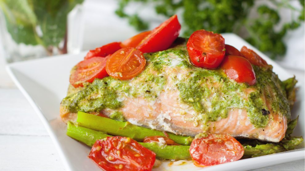 דג סלמון ברוטב לימון ובזיליקום