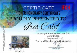 member of the Composers’ Association of Hebrew authors and publishers in Israel named “ ACUM. Iris is Award Winner of 2023: The International Best Poets & POETS: THE JOURNAL OF RENDITION OF INTERNATIONAL POETRY (ITRC)[Multilingual] [China]