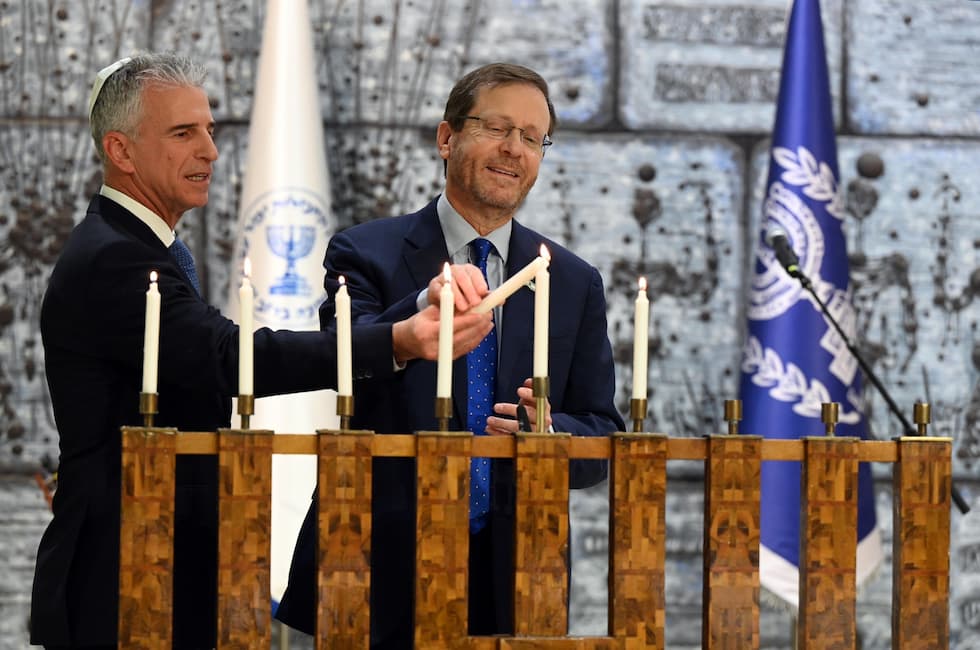 אני מבקש להודות לך כבוד נשיא המדינה על קיום המסורת היפה הזו, שנה אחר שנה, במשכן בית הנשיא בירושלים. תודה רבה באופן אישי על התמיכה, הליווי והעבודה המשותפת עם המוסד. תודה רבה כבוד הנשיא”.